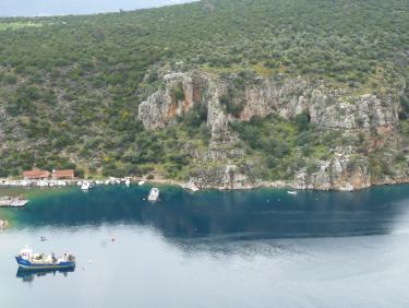Blick in eine Bucht auf der Fahrt von Athen nach Nafplio mit Zwischenstopp in Epidauros