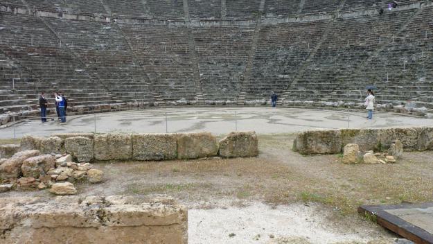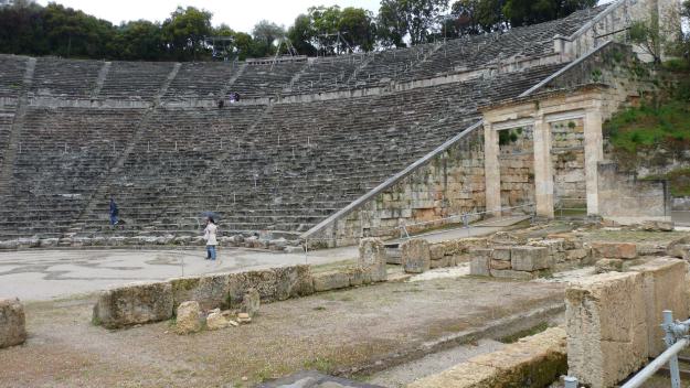 Bild mit Frontansicht auf das Aphitheater von Epidauros