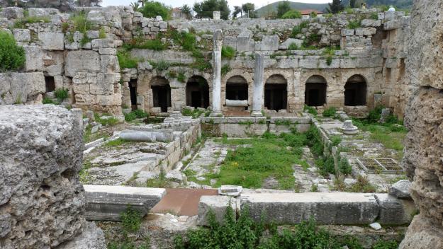 Bild eines Eingangs zu einem antiken Laden im nordwestlichen Teil der Stoa von Korinth.
